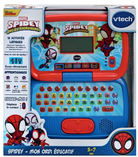 Ordinateur Éducatif Spidey de VTECH Découvrez l'ordinateur éducatif Spidey de VTECH, une solution parfaite pour les enfants de 3 à 7 ans. Apprentissage Ludique Grâce à ses 15 activités guidées par la voix de Spidey, votre enfant pourra apprendre de manière ludique : L'alphabet La phonétique Les chiffres Et bien plus encore ! Navigation Intuitive Le curseur directionnel permet de naviguer facilement dans les activités, offrant aux enfants une expérience utilisateur similaire à celle des adultes. ...