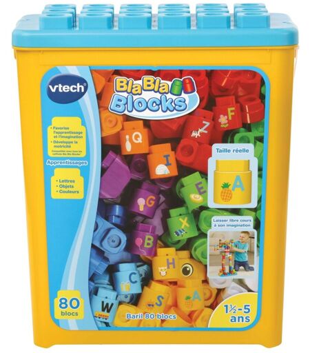 VTECH - BLA BLA BLOCKS - Baril de 80 Blocs -Sans electronique- - Bla-Bla-Blocks -Baril de 80 blocs - 1,5 - 5 ans Bla-Bla-Blocks, c'est un systeme de construction avec des blocs interactifs adaptés aux tout-petits. Avec ce pack de 80 blocs, l'enfant découvre des blocs illustrés et ... ...