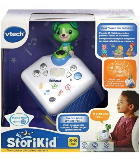 Participez à l'éveil de vos enfants avec le Jeu VTECH StoriKid - Mon conteur d'histoires. Ses contenus variés et ludiques favoriseront l'apprentissage de la langue et des sons. Un jeu complet Le Jeu VTECH StoriKid - Mon conteur d'histoires a été pensé pour faire de l'éveil des enfants une expérience douce et amusante. Sa richesse aiguisera la curiosité des enfants en les stimulant. Vous profiterez de plus de 80 contenus, des contes, des fables et des histoires qui raviront les petits de 3 à 8 ans. Avec le Jeu VTECH StoriKid - Mon conteur d'histoires, vos enfants profiteront d'un apprentissage ludique, en musique ou en récit, des classiques de la littérature. Ce jeu contient également des histoires spécialement écrites pour aider les petits à s'endormir. Vous pourrez aussi enrichir l'appareil en téléchargeant gratuitement plus de contenus sur Explor@ Park. Suscitez la créativité Mais le Jeu VTECH StoriKid - Mon conteur d'histoires ne se contente pas d'apporter des contenus variés à vos enfants. Grâce à l' enregistreur vocal, ils pourront enregistrer leurs propres histoires et chansons. Le soir, ils seront rassurés par la projection au plafond d'images animées qui les calmera et les accompagnera dans leur sommeil. Ils pourront aussi s'amuser des blagues du petit chien animé. La santé de vos enfants étant primordiale, le Jeu VTECH StoriKid - Mon conteur d'histoires n'émet aucune onde et ne dispose d'aucun écran. De même, vous pourrez compter sur la fonction veilleuse et sa douce lumière pour rassurer l'enfant. Enfin, vous pourrez tranquillement programmer le jeu grâce au limiteur de temps. Celui-ci vous permet de choisir le nombre d'histoires à lire avant l'heure du coucher. ...