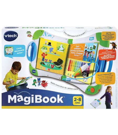 Votre enfant apprend en s'amusant grâce à un livre interactif et ludique. Avec le stylet, il découvre les illustrations et enrichit son vocabulaire grâce à des chansons, et des phrases. Il apprend également les chiffres, le calcul, et les sciences, facilement et de façon toujours amusante ! Apprendre en s'amusant Avec votre Jeu VTECH MagiBook, un livre-imagier éducatif est inclus, pour apprendre à votre enfant de nombreux mots qu'il peut utiliser au quotidien. Tout en jouant, il apprend et enrichit son vocabulaire, mais aussi ses compétences, depuis la maternelle jusqu'à l'école primaire avec différents niveaux disponibles. Sur chaque page du Jeu VTECH MagiBook, découvrez 4 icônes intuitives. Dans chaque livre se trouvent des milliers d'interactions, pour apprendre en s'amusant. Des sons, des jeux, des phrases et même des chansons se réveillent au toucher avec le stylet, pour une lecture ludique et un approfondissement des connaissances de votre enfant. Pratique et ergonomique La poignée de transport permet à votre enfant d'emmener son Jeu VTECH MagiBook partout avec lui, à l'école, en voiture, chez le pédiatre, et plus encore. Antichoc, le jeu est très résistant et est robuste face aux éventuelles chutes et chocs. Emportez-le partout pour plus de praticité et de simplicité au quotidien. Le stylet interactif a été spécialement conçu pour les petites mains et pour être parfaitement ergonomique à la préhension pour votre enfant. Il permet d'activer de nombreuses stimulations et réagit à chaque fois que votre enfant touche une illustration, pour plus d'amusement à chaque lecture. ...