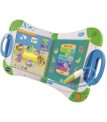 ARTICLE EXCLUSIVEMENT EN ESPAGNOL Magibook est un nouveau système d'apprentissage interactif amusant. Une nouvelle expérience pour découvrir les chiffres, les formes, les couleurs, de nouveaux mots et bien plus encore ! MagiBook est un système interactif complet pour apprendre et explorer de nouvelles connaissances qui évoluent avec l'enfant. Il vous permet également de découvrir des connaissances et des compétences utiles de la maternelle à des niveaux plus avancés. Avec MagiBook, votre enfant entrera dans un monde interactif dans lequel la voix réconfortante du narrateur et les personnages amicaux le guideront à travers une foule d'activités amusantes. De plus, la musique et les chansons l'encourageront à faire de nouvelles découvertes (les livres d'activités sont vendus séparément). Avec un crayon magique conçu pour s'adapter à la main de l'enfant. Il doit toucher les livres pour apprendre les mots et découvrir de nouveaux sons et chansons. Apprenez et découvrez pendant que vous jouez ! Comprend : Système interactif MagiBook, livre échantillon, guide de démarrage rapide, manuel d'instructions et câble USB. Âge recommandé : de 2 à 7 ans. Vous aurez besoin d'une connexion Internet et devrez créer un compte avec Vtech pour télécharger et installer le contenu audio des livres. Exigences pour PC : Processeur : Pentium 4 ou supérieur. Système d'exploitation Microsoft Windows, Windows 7, 8 ou 10. Mémoire : 256 Mo de RAM. Carte graphique : 1024 * 768. 300 Mo d'espace libre sur le disque dur. Port USB. Adobe Flash Player. Exigences pour Macintosh : Processeur pentium 4 ou supérieur. Mac OS X version 10.6, 10.7, 10.8, 10.9, 10.10, 10.11, 10.12. Mémoire 512 Mo de RAM. Carte graphique : 1024x768. 300 Mo d'espace disque libre. Port USB. Adobe Flash Player. ...