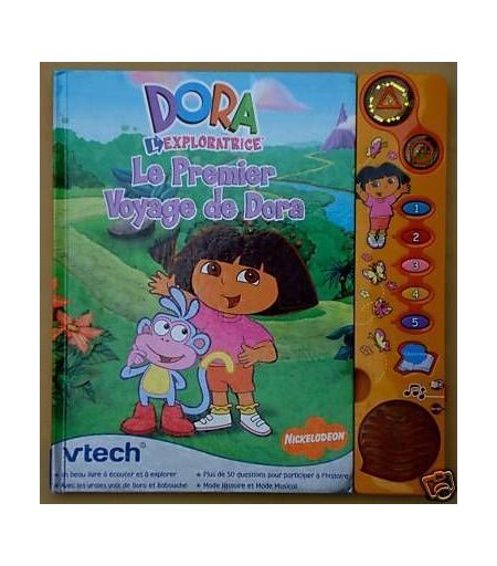 Un livre parlant et musical à écouter et à explorer ! Un fantastique livre électronique parlant et interactif : il suffit simplement de tourner les pages pour écouter l'histoire et le livre reconnaît automatiquement la page choisie par l'enfant. Tout au long du récit, l'enfant joue et chante avec Dora et Babouche, découvre les couleurs, les formes, les chiffres et ses premières notions d'anglais.10 mélodies... Dès 3 ans. 3 piles LR6 fournies. ...