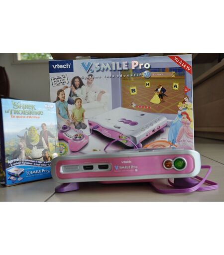 Voici la dernière née de la famille V.Smile: V.Smile Pro! Une nouvelle console de jeu éducative dédiée aux juniors. Embarque pour de nouvelles aventures 3D avec tes héros préférés, multiplie tes découvertes grâce aux encyclopédies thématiques illustrées et aux différentes activités de maths, sciences, orthographe, vocabulaire, histoire... La console V.Smile Pro lit aussi les CD audio. Selon la version le Jeu Scooby Doo (version grise) ou Disney Princess (version rose) inclus. Fonctionne avec adaptateur 9V fourni. De nombreux autres jeux éducatifs V.Smile Pro à découvrir: Les Indestructibles, Bob l'Eponge, Spiderman, Cars Dingo Rallye Fou Fou Fou, Shrek le troisième. En plus tu peux sauvegarder ta partie avec la carte mémoire ...