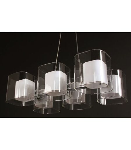 Sampa - Suspension lustre pour plafond blanc 6 lumières en verre et métal
