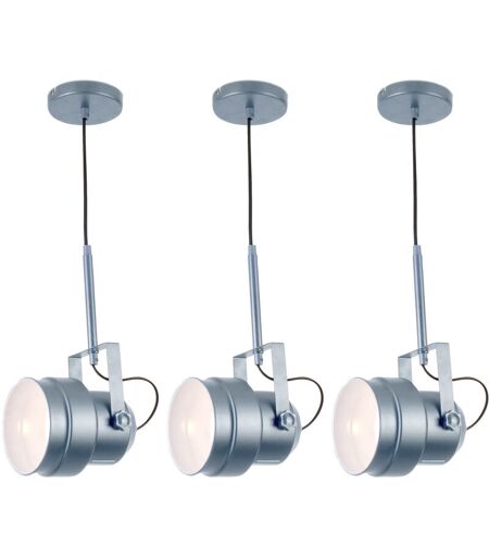 Lot de 3 lampes Suspension industrielle en métal pour plafond Compatible lampe LED (Ampoule non fournie). Superbe suspension lumineuse au design industriel idéale pour illuminer votre cuisine, salon ou toute autre pièce de votre habitation. Cette suspension pour plafond apportera lumière et style à votre pièce grâce à son design industriel. Solide et pourtant légère, cette lampe à suspendre s'illustre par son métal d'une très belle qualité. Descriptif : Poids de l'article : 820 g Couleur : Argent Matériau : Métal Usages spécifiques : Usage intérieur uniquement Dimensions : Hauteur : 100 cm maximum (hauteur réglable) - Diamètre : 15 cm Caractéristiques techniques : Type d'ampoule compatible : LED, Halogène, Fluo compacte Type de culot : E27 Nombre d'ampoules : 1 (non incluse) Puissance : 40 Watts Volt : 230 V Branchement : électrique Kit et notice de fixation fournis Légère et robuste, cette suspension industrielle se fixe au plafond sans aucune difficulté et rapidement. Ce luminaire ...