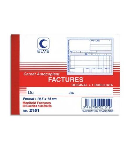 Elve Manifold autocopiant facture Lebon & Vernay - format 10,5x14 cm - 50 feuillets dupli