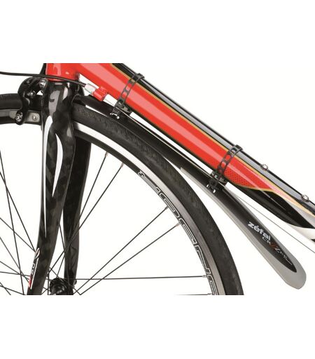 Garde boue vélo route marque ZEFAL modèle CROOZER ROAD Résine techno-polymère Bavette surmoulée Fixation par sangles élastomères Tube maxi diamètre 55mm Poids 60g Largeur lame : de 50 à 70 mm ...