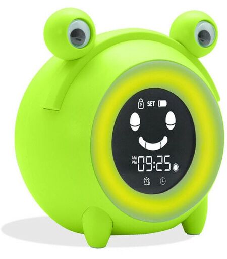 Le réveil NOA est le compagnon idéal pour apprendre à votre enfant à faire ses nuits en toute autonomie. De façon ludique, le réveil NOA communique avec votre enfant grâce aux jeux de lumières, aux expressions faciales et aux icônes intégrés pour l'aider à trouver son rythme de sommeil. 30 minutes avant l'heure du coucher, une lumière bleue apparaît pour signifier à votre enfant qu'il est bientôt l'heure d'aller se coucher. Après 30 minutes, les yeux du réveil NOA se ferment, la luminosité de l'écran devient faible : il est l'heure de dormir et l'icône de la lune apparaît sur l'écran. 30 minutes avant l'heure du réveil, une lumière jaune apparaît, les yeux du réveil NOA s'ouvrent et l'icône du soleil apparaît sur l'écran. Quand la lumière passe au vert, il est l'heure de se lever et de débuter une nouvelle journée. Le réveil NOA est multifonctions : veilleuse avec 5 couleurs disponibles et 3 mélodies au choix pour favoriser l'endormissement de votre enfant. Les niveaux du volume et de ...