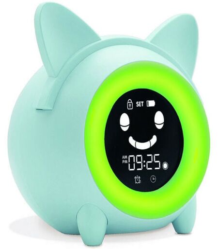 Le réveil CELESTE est le compagnon idéal pour apprendre à votre enfant à faire ses nuits en toute autonomie. De façon ludique, le réveil CELESTE communique avec votre enfant grâce aux jeux de lumières, aux expressions faciales et aux icônes intégrés pour l'aider à trouver son rythme de sommeil. 30 minutes avant l'heure du coucher, une lumière bleue apparaît pour signifier à votre enfant qu'il est bientôt l'heure d'aller se coucher. Après 30 minutes, les yeux du réveil CELESTE se ferment, la luminosité de l'écran devient faible : il est l'heure de dormir et l'icône de la lune apparaît sur l'écran. 30 minutes avant l'heure du réveil, une lumière jaune apparaît, les yeux du réveil CELESTE s'ouvrent et l'icône du soleil apparaît sur l'écran. Quand la lumière passe au vert, il est l'heure de se lever et de débuter une nouvelle journée. Le réveil CELESTE est multifonctions : veilleuse avec 5 couleurs disponibles et 3 mélodies au choix pour favoriser l'endormissement de votre enfant. Les ...