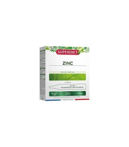 Superdiet Zinc 20 Unités - Boîte 20 ampoules de 15 ml