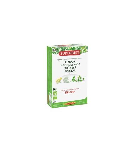 Superdiet Quatuor Thé Vert Minceur Bio Fenouil Reine Des Prés Thé Vert Bouleau - 20 Ampoules de 15 ml - Boîte 20 ampoules de 15 ml