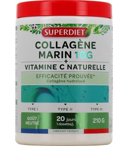 Superdiet Collagène Marin 10g + Vitamine C Naturelle 210g