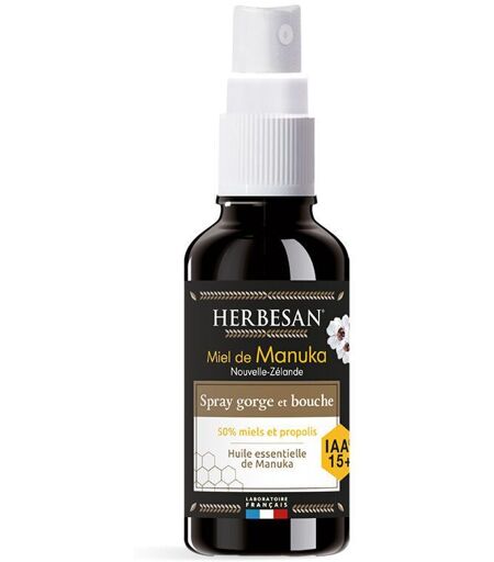 Complément alimentaire à utiliser dans le cadre d’une alimentation variée, équilibrée et d’un mode de vie sain.Retrouvez les propriétés uniques du miel de manuka IAA10+ associées à l'huile essentielle de Manuka sauvage dans un spray gorge et bouche. Fabriqué en France, ce spray gorge et bouche est un concentré d'actifs rigoureusement sélectionnés : le miel de manuka IAA 10+, l'huile essentielle de manuka et la propolis française. Flacon 25ml.IngrédientsMiels (Miel toutes fleurs (44,7%), Miel de Manuka (4,7%)) - Extrait hydroalcoolique de Propolis - Extrait aqueux de Camomille romaine (Sommité fleurie) , Cassis (feuille) et Plantain lancéolé (feuille) - Huile essentielle de Manuka sauvage (feuille)Ingrédients d'origine UE/Non UE.Conseils d'utilisationPrendre 2 à 3 pulvérisations par utilisation, 3 à 6 fois par jour. Bien agiter avant emploi. A conserver au sec et à l'abri de la lumière, de l'humidité et de la chaleur, à une température inférieure à 20°C.Précautions d'emploiIl est recommandé de respecter les doses conseillées, de veiller à avoir une alimentation variée et équilibrée et un mode de vie sain. Tenir hors de la portée des jeunes enfants. Usage oral uniquement - ne convient pas en injection.Poids netFlacon de 25 mlAdresse du FabricantLaboratoire SUPERDIET Siège social 8 rue C. Colomb 75008 PARIS ...