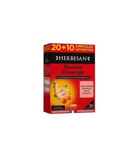 Herbesan Ginseng Gelée Royale Vitamine C Acérola 20 + 10 Ampoules Offertes est un complément alimentaire buvable qui contribie à préserver le tonus et l'énergie et à réduire la fatigue physique ...