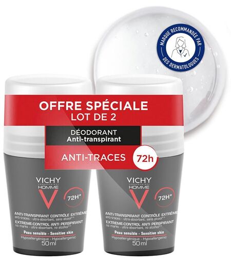 LOT*2 Vichy Homme Déodorant bille 72H Rouleau 2x50 ml