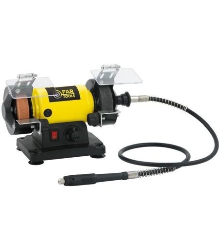 FARTOOLS Mini touret a meuler 120 W MBG120 - Mini touret a meuler - Puissance : 120 W - Vitesse de rotation : 0 a 9900 tr/min - Taille du disque : 75 mm - Livré avec 1 meule et 1 brosse a polir - Ecran polycarbonate résistant - Flexible connectable a l'arbre - Pour nettoyer, ... ...