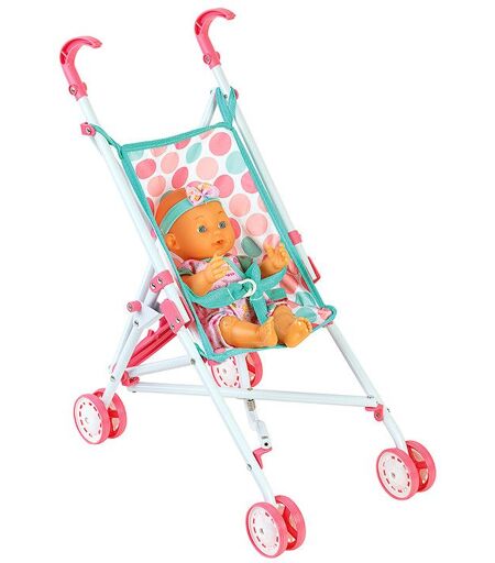 Poupon de 33 cm avec sa poussette canne à pois - Rose