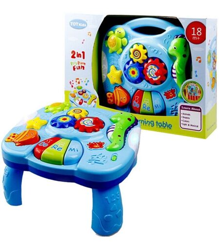 Table à musique pour bébé, jouet éducatif, Machine d'apprentissage de la musique, Instrument de musique pour tout-petit de 6 moisCaractéristiques:1. Clé de commutateur de musique de rotation de 360 degrés: l'engrenage et l'étoile de mer peuvent tourner de 360 degrés pour exercer la flexibilité des doigts du bébé, des motifs de dessin animé vifs et augmenter l'intérêt du bébé pour les jouets.2. Touche de coupe de musique de tortue Flexible et vive: elle peut pousser la tortue de haut en bas, et sera accompagné de la commutation de la musique pour exercer la capacité pratique et apporter une musique merveilleuse au bébé en même temps.3. Le poisson de dessin animé à bouton-poussoir est mignon et vif: appuyer sur le poisson à gauche et à droite peut changer de musique et produire différents effets sonores pour exercer la capacité de coordination main-cerveau du bébé.4. Équipé de pieds de table, démontage et assemblage faciles: les pieds de table peuvent être démontés et installés, ce qui est pratique pour le transport et l'utilisation. En même temps, il peut également exercer la capacité pratique du bébé et la capacité de construction d'objets lors du démontage et du montage.5. Avec sangle, il peut être accroché au chevet: il y a deux sangles à l'arrière, et la longueur de la sangle peut être ajustée à travers le trou de vis, qui peut être accroché à une longue tige. Description:Avec sa taille légère et portable, ce bureau d'apprentissage précoce est facile et pratique à transporter et à utiliser. Spécifications:Taille: 26.7*25*16cmÂge Applicable: plus de 18 moisType de batterie: 3 * piles n ° 5 (fournies par vous-même) Emballage Inclus:1 * bureau d'apprentissage précoce (sans batterie)Notes:1. Veuillez permettre une erreur de 0-1 pouce en raison de la mesure manuelle. Merci de votre compréhension.2. Les moniteurs ne sont pas calibrés de la même manière, la couleur de l'article affichée sur les photos peut être légèrement différente de l'objet réel. ...