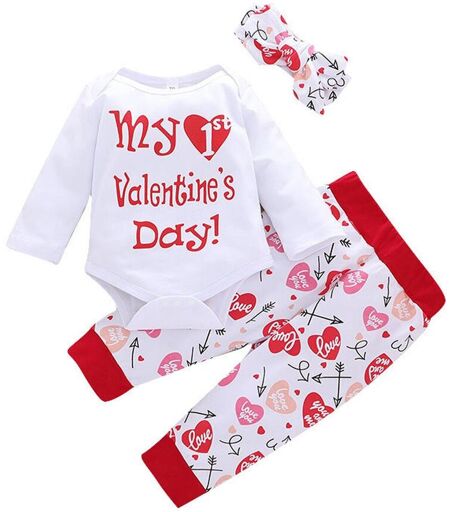 My First Valentine'S Clothing ? Ensemble De Vêtements Pour Bébé Fille (0-24m), Avec Lettres Imprimées, Barboteuse, Pantalon, Bandeau, 3 Pièces