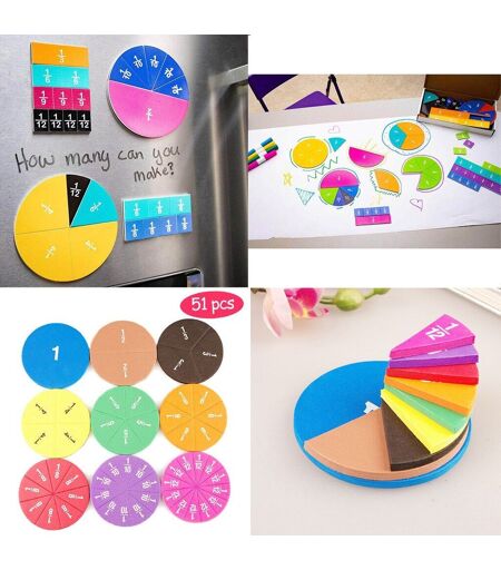 Carte De Fractions Circulaires Magnétiques, 51 Pièces, Jouets D'enseignement Des Mathématiques,
