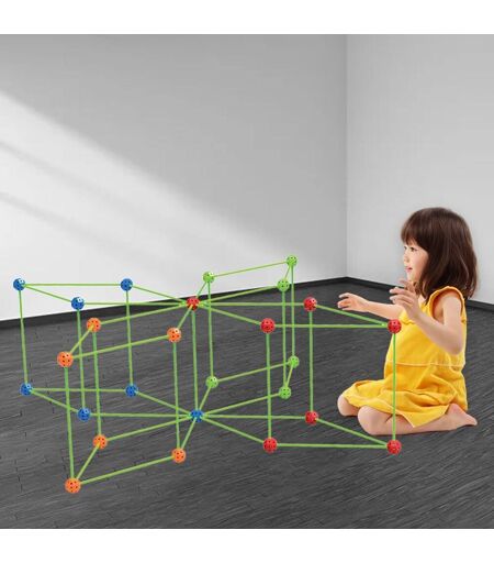 Kit De Construction De Fort Amusant, 120 Pièces, Balles Et Bâtons, Château, Tente De Jeu, Développement De Puzzle, Jouets De Construction En Plein Air