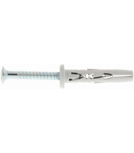 Pose simple au travers de la pièce à fixer Expansion par frappe ou par vissage (démontage possible) Corps en polyamide 6 (nylon haute performance) Meilleur placage grâce au Ø important de la collerette Charge indicative sur béton : chevilles Hit 5 = perçage Ø 5, charge 15 kg chevilles Hit 6 = perçage Ø 6, charge 25 kg chevilles Hit 8 = perçage Ø 8, charge 45 kg Cheville Hit 6 5 /35 = Longueur cheville : (35 mm) Pièce à fixer épaisseur maxi : (5 mm) Diamètre de perçage : (6 mm) Vis en acier zingué Conditionnement en boîte (chevilles + vis) Conditionnement : Boite de 100 Diamètre de perçage : 40 mm Charge indicative sur béton : 25 kg Dimensions : 6 x 65 mm ...