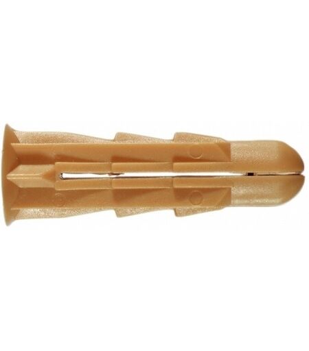 Description générale Les chevilles plastiques universelles Arpon de la marque Spit sont conçues pour une utilisation dans des matériaux creux. Leur corps plein permet l'utilisation de vis de petits diamètres, assurant ainsi une fixation solide et fiable. Grâce à leur conception dentée et carrée, elles empêchent la rotation pendant l'installation, garantissant une performance optimale. Spécifications techniques Type de tête : cylindrique Longueur : 25 mm Diamètre : 6 mm Matériau : 100% polypropylène Conditionnement : boîte de 100 chevilles Vis compatibles : 3 à 5 mm Compatibilité et accessoires Idéales pour les matériaux suivants : Carreaux céramiques Parpaing creux Brique creuse Béton non fissuré Bloc solide Brique pleine Installation Préparer un trou avec un diamètre de 6 mm. Utiliser un foret de 30 mm de profondeur. Insérer la cheville dans le trou et visser la vis de 3 à 5 mm. Utilisation Fixation d'appareils de cuisine et de sanitaires. Installation d'éclairages. Montage de ...