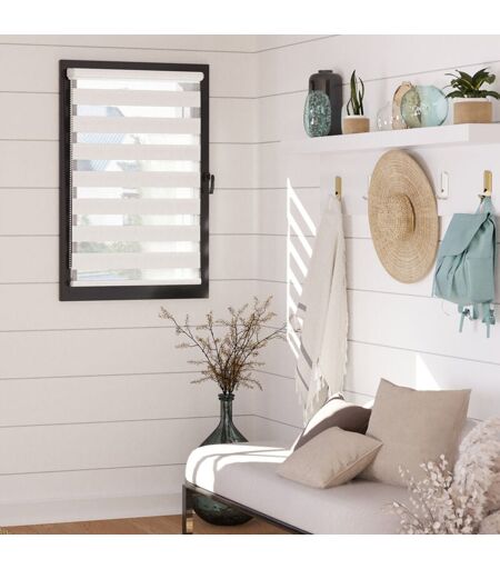 MADECOSTORE Store enrouleur jour nuit chaînette coordonnée sans percer - Blanc - L56 x H190cm