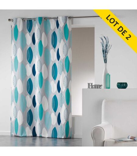 Coton D'intérieur - Lot de 2 rideaux a oeillets 140 x 240 cm coton imprime leafy Bleu