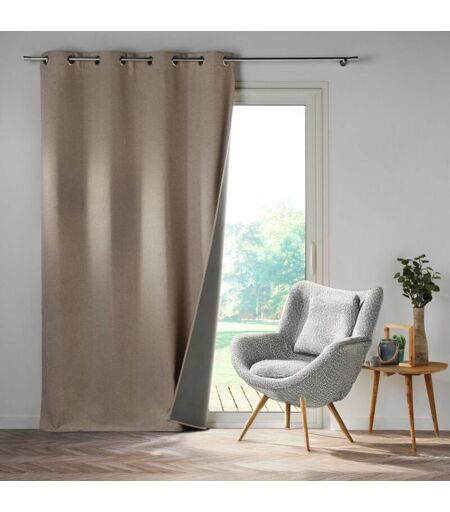 HOMEMAISON Rideau à Œillets 140 x 260 cm – 100 % Occultant / Chambray Uni – Crépuscule Beige