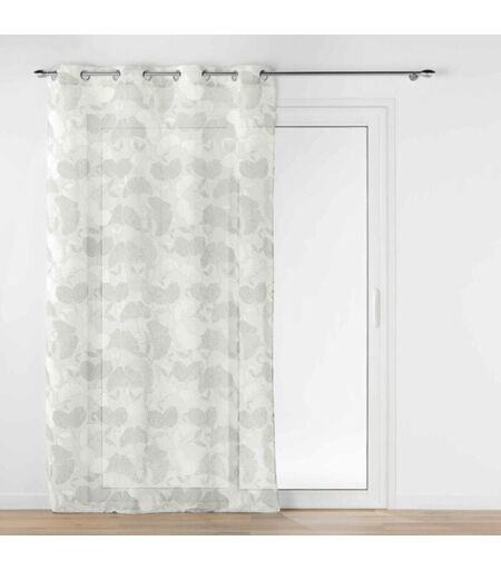 Bricoline - Voilage a oeillets 140 x 280 cm effet lin tissé imprimé Ginko Blanc