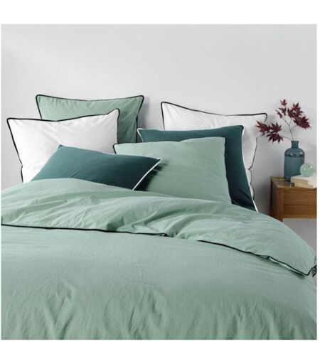 Douceur D'intérieur - parure 3 p. 240 x 220 cm coton lave uni 57 fils linette sauge - 220x240cm - Vert sauge
