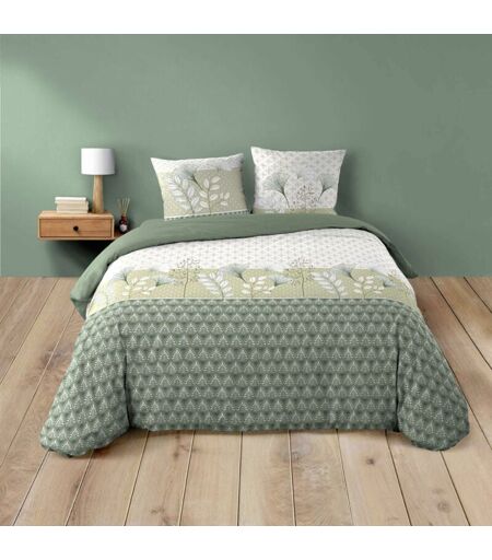 Apportez confort et douceur à vos nuits avec cette parure de lit en pur coton. Sa matière respirante et naturelle vous assure un sommeil agréable tout au long de l’année. Tissu léger, souple et agréable au toucher et résistant • 1 housse de couette 240 x 220 cm • 2 taies d’oreiller 63 x 63 cm • 100% coton tissé 42 fils/cm² • Couleur blanc vert ...