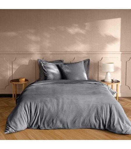 DOUCEUR D'INTÉRIEUR Parure lit flanelle - Housse couette chaude - Oeko tex - 3 pieces - Lit double - 240x220cm - anthracite