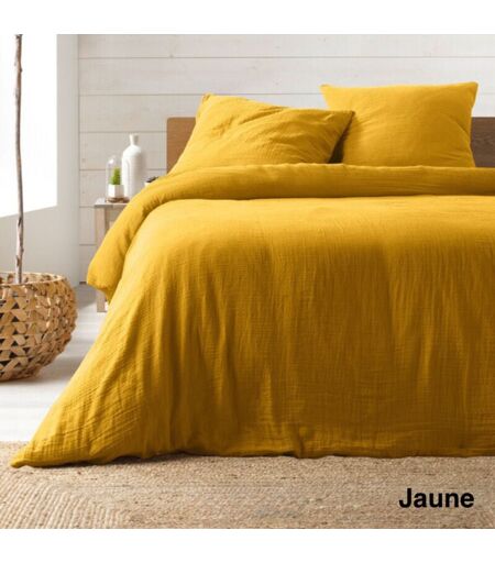Douceur D'intérieur - Parure de Lit en Gaze de Coton 240 x 220 cm - jaune