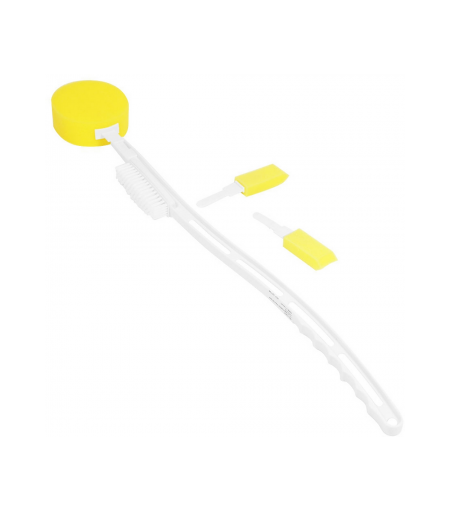 Avec son long manche de 60 cm et ses deux fines éponges, cette brosse permet un nettoyage efficace entre les orteils, garantissant une hygène optimale. Elle est particulièrement utile pour les personnes ayant des difficultés à se pencher, et elle est essentielle pour les personnes diabétiques susceptibles de souffrir de complications au niveau des pieds. Une grande éponge ronde et une brosse à poils longs permettent de laver le reste du corps, comme le dos et les jambes. Le manche ergonomique assure une excellente prise en main. ...
