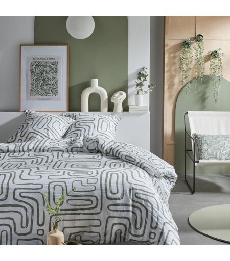 Today Parure Housse de couette vert kaki et blanc 240 x 220 cm+ 2 taies d'oreiller 63x63cm volant, blanc unisex