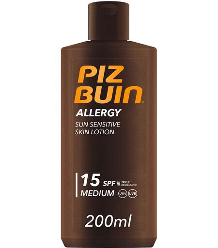 Lotion anti-allergie PIZ BUIN SPF 15. Protection solaire corps. Type de peau: Sensible. Textures: Lotion. Protection SPF: SPF moyen 15 ...