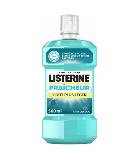 Idéal pour prévenir et réduire la plaque dentaire, Listerine Fraîcheur Goût plus Léger est un bain de bouche qui prolonge l’action de votre dentifrice.Formulé sans alcool, au goût plus léger, il peut être utilisé par toute la famille dès 6 ans. Sa formule aux 4 huiles essentielles (thymol, eucalyptol, menthol, salicylate de méthyle) élimine les bactéries responsables de la mauvaise haleine, préserve l’équilibre de la flore buccale, et prévient la plaque dentaire. Arôme menthe douce. ...