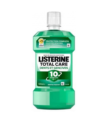 Parapharmacie > Hygiène & Premiers soins > Bucco-dentaire > Bains de bouche Listerine Bain de Bouche Total Care Dents & Gencives 10 bénéfices en 1 500 ml - Bains de bouche - Pharmacie en ligne LaSante.net