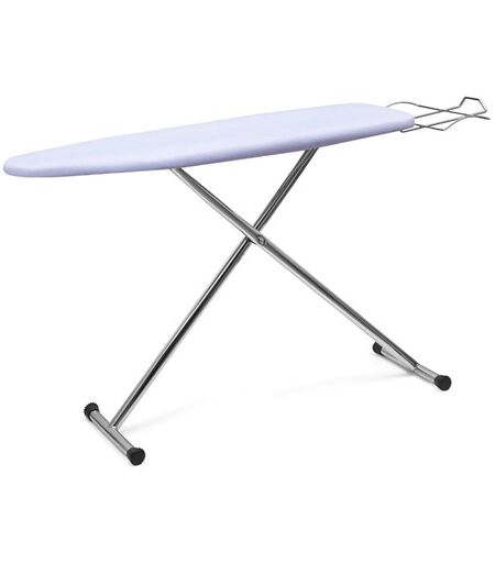 Ajouré traité anticorrosion. Hauteur réglable : 8 positions (76 à 96 cm). Pieds chromés. Pieds antidérapants avec embouts réglables. Repose-fer coulissant pour toute centrale vapeur et fers classiques. Encoches spéciales pour cintres et repassage vertical. Epais molleton et mousse alvéolaire. Dimensions : 113 x 36 cm ...