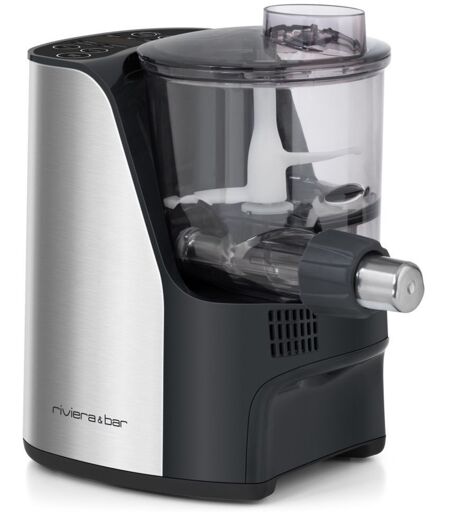 Transformez-vous en chef cuisiner italien avec la machine à pâtes Riviera-et-Bar PMP500. À la maison, réalisez facilement des pâtes fraiches grâce aux 4 programmes automatiques, dont un sans gluten. Réalisez de multiples recettes Avec ses 8 moules et ses 4 programmes automatiques, vous pouvez confectionner une grande diversité de pâtes : capellini, spaghetti classiques, spaghetti épais, linguine, tagliatelle, rigatoni, lasagne et ravioli. De quoi s'adapter à vos différentes envies du moment. N'hésitez pas à varier les farines et aromatiser vos pâtes avec de la tomate, des épinards... pour encore plus de possibilités. En plus des pâtes classiques et aux oeufs, cette machine Riviera-et-Bar PMP500 offre la possibilité de faire des pâtes sans gluten. Option intéressante pour les personnes intolérantes ou qui souhaitent tout simplement réduire leur consommation de gluten, tout en mangeant un produit au goût et à la qualité préservés. Obtenez facilement de délicieuses pâtes faites maison La machine Riviera-et-Bar PMP500 est dotée d'un panneau de commande intuitive qui permet de suivre l'avancée des programmes, de l'ajout automatique et progressif de l'eau et d'un guide d'utilisation sur le couvercle. Autant d'éléments qui rendent sa prise en main très facile. Versez les ingrédients, lancez le programme et la machine s'occupe du reste. Un mode manuel est disponible pour chaque étape du processus de fabrication. La PMP500 reproduit le mouvement de pétrissage à la main et dispose d'une ventilation à l'extrusion qui évite que les pâtes ne collent. Son tiroir de rangement intégré vous permet de ranger les moules, et ses matériaux de fabrication en inox brossé et Tritan en font un appareil robuste. ...