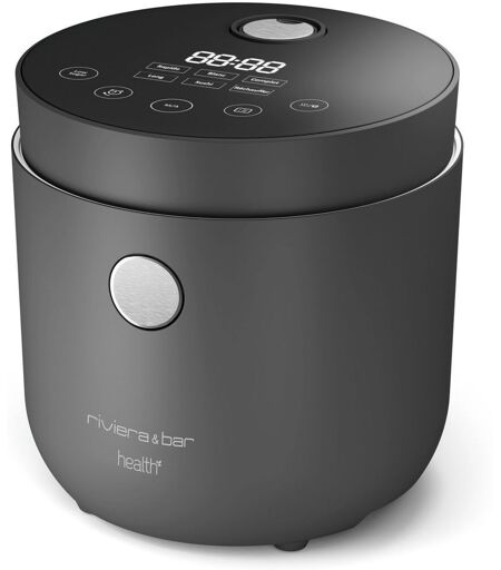 De délicieux plats à base de riz et de céréales en un seul geste, c'est la promesse du cuiseur à riz QCR370 de Riviera & Bar. De savoureux plats en quelques instants Grâce à une technologie ultra-performante nouvelle génération, le cuiseur à riz QCR370 de Riviera & Bar dispose d'un programme Low Sugar qui réduit la teneur en glucides et l'apport calorique de votre riz pour vous garantir des plats sains et équilibrés. Son panier et son couvercle en inox spécifiques récupèrent l'amidon libéré par le riz dans le plateau supérieur ou la cuve principale. Ne conservez que le meilleur de vos céréales et riz grâce à cet appareil intuitif ! Avec cinq programmes prédéfinis, le cuiseur à riz QCR370 de Riviera & Bar s'adapte à toutes vos envies : il cuit à la perfection tous les types de riz, du riz blanc au riz complet en passant par le riz à sushi, pour le bonheur des fins gourmets. La polyvalence de cet appareil vous permet également de maintenir au chaud et de réchauffer vos plats déjà prêts, tandis que sa fonction départ différé jusqu'à 24h se plie à votre emploi du temps. Une conception pointue Récompensé par deux prix de design (iF Design Award et Red Dot Award), le cuiseur à riz QCR370 de Riviera & Bar vous offre une utilisation pratique et intuitive : son panneau de commandes sensitives rétroéclairé vous donne accès à tous les programmes et options de l'appareil et se verrouille pour garantir la sécurité de vos enfants. Une fois la cuisson terminée, il se met en veille automatiquement pour vous laisser l'esprit tranquille. Le design élégant du cuiseur à riz QCR370 de Riviera & Bar en fait un appareil compact et pratique, idéal pour tous les espaces et les amateurs de beaux objets. Fourni avec un verre doseur et une spatule à riz, votre cuiseur à riz est prêt à l'emploi en quelques secondes. Le plus : son panier et son plateau en inox sont lavables au lave-vaisselle pour un entretien simple et sans effort. ...