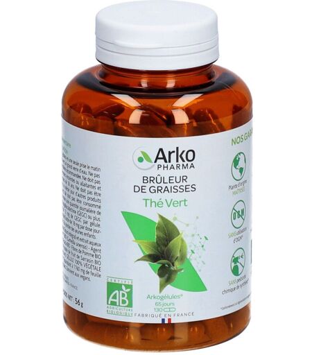 Complément alimentaire à utiliser dans le cadre d'une alimentation variée, équilibrée et d'un mode de vie sain.Grâce à son savoir-faire unique, Arkopharma restitue 100 % des actifs du Thé vert, qui agissent en synergie dans le plus grand respect de votre corps. Le Thé vert (Camellia sinensis) (ou Thé vierge) provient du théier qui est un petit arbuste des forêts pluvieuses de l'Inde et de l'est de la Chine. La partie utilisée est le bouton et les deux premières feuilles du rameau du théier, qui après récolte, sont rapidement séchés et roulés pour obtenir le Thé vert. Les feuilles et les bourgeons pour lesquels on laissera s'amorcer une fermentation seront destinées à la fabrication du Thé noir. Le Thé vert tient sa richesse dans ses jeunes feuilles qui sont traditionnellement utilisées pour soutenir le métabolisme naturel des graisses dans le cadre d'un régime amincissant*. Forts de leur expertise dans le domaine de la phytothérapie, les laboratoires Arkopharma ont spécialement élaboré Arkocaps® Thé vert : une formule exclusive, à base d’ARKOTOTUM®Intégral, permettant de restituer 100 % des actifs de la plante tout en préservant sa qualité et son intégrité. Conçue et élaborée en France, la gamme Arkocaps® vous offre le meilleur de la nature. Pour en savoir plus sur le procédé de fabrication des Arkocaps®, rendez-vous sur Arkocaps® un savoir-faire unique. * Allégation de santé en attente d'approbation par l'EFSA.IngrédientsPoudre de feuille de Thé vierge (Camellia sinensis).Enveloppe d'origine végétale : Hydroxypropylméthylcellulose.Données nutritionnellesInformation nutritionnelle moyennepour 2 gélulesPoudre de Thé vert220 mgExtrait aqueux de Thé vert220 mgConcentration en catéchines50 mgConseils d'utilisationsDose journalière recommandée:Voie orale.Réservé à l’adulte.Prendre 2 gélules le matin au moment des repas avec un grand verre d’eau.Précautions d'emploiNe pas dépasser la dose journalière recommandée.Ne pas laisser à la portée des jeunes enfants.À conserver à l'abri de la lumière, de la chaleur et de l'humidité.Ne pas consommer si vous prenez d'autres produits contenant du thé vert le même jour.Ne convient pas aux femmes enceintes ou allaitantes ni aux enfants de moins de 18 ans.Ne pas prendre à jeun.Poids net130 softgelsFabricantArkopharma BeluxAv. Edison 13,1300 WavreBelgique ...