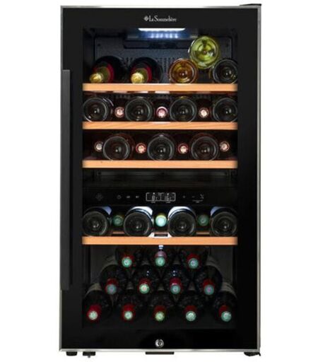 Cave à vin de service La Sommelière ECS51.2Z - Cette cave à vin pose-libre d'une capacité de 49 bouteilles est conçue pour mettre à température de dégustation tous vos crus avec précision - Dotée de deux zones indépendantes réglables entre 5 et 20°C, elle permet de conserver simultanément différents types de vins dans des conditions idéales - La connexion WiFi compatible Vinotag vous offre un contrôle à distance de la température et de l'éclairage, où que vous soyez - Les 4 clayettes en bois naturel, amovibles et ergonomiques, absorbent les vibrations et assurent un maintien parfait des bouteilles type Bordeaux 75 cl - Le système de refroidissement brassé et l'anti-vibration garantissent stabilité et homogénéité - Sa porte vitrée en verre trempé anti-UV protège vos vins de la lumière tout en offrant une visibilité élégante sur votre collection, sécurisée par une serrure intégrée - L'éclairage LED blanc met subtilement en valeur vos bouteilles - Pose-libre, elle mesure 48 x 57,5 x 84,5 ...