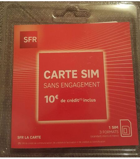 Carte Sim Prépayée Sfr Nano Micro 10 Euros De Crédits