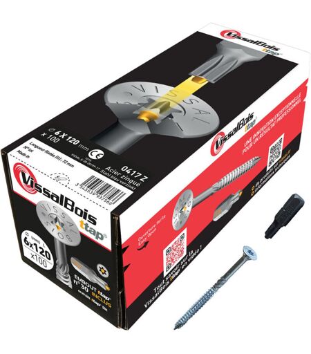 Informations produit : Vis spécial bois VissalBois zinguée Matériau: acier zingué Tête fraisée TX Plusieurs dimensions possibles Conditionnement: boîte de 100 / 200 / 500 Marque: VissalBois ...