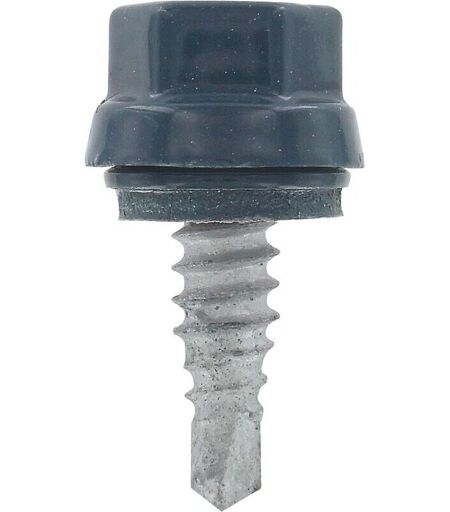 Vis autoperceuse. Assemblage des bacs acier entre eux sur chevauchement et tôles de finition. En acier cémenté. Pointe foret. Tête hexagonale laquée époxy. Rondelle en aluminium Ø 14 mm, épaisseur 2 mm, avec étanchéité EPDM vulcanisé. Pas de 1,81 mm. ...