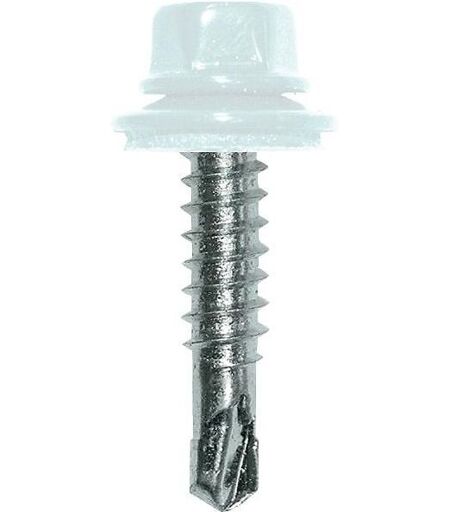 Vis autoperceuse pour la fixation bardage industriel sur lisse métallique. En acier cémenté. Tête hexagonale laquée époxy. Rondelle en acier Ø 14 mm, épaisseur 2 mm, avec étanchéité EPDM vulcanisé. Pas de 1,81 mm. Pointe foret. Capacité de perçage : 1,5 à 4 mm. ...