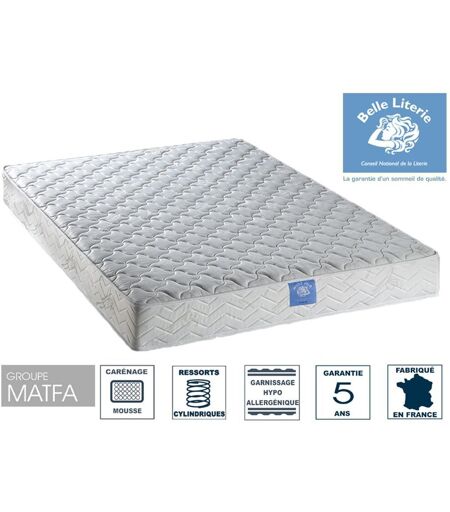 - Technologie : Suspension ressorts biconiques (336 pour la dimension 140x190cm)- Ceinture de mousse stabilisatrice- Hauteur totale : 19cm- Double face de couchage : oui- Garnissage : 1700g/m2 constitué de feutre et de coton.- Face hiver : ouate 150g/m2 + mousse de confort 8mm.- Face été : mousse de confort 8mm.- Composition coutil : 66% coton - 34% polyester- Fabriqué en France- Produit certifié Belle literie par Sardem. ...
